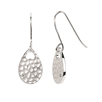 Diva Diamonds® Pear Shape Hammered Drop Earrings In Sterling Silver With .01 Ct. Diamond