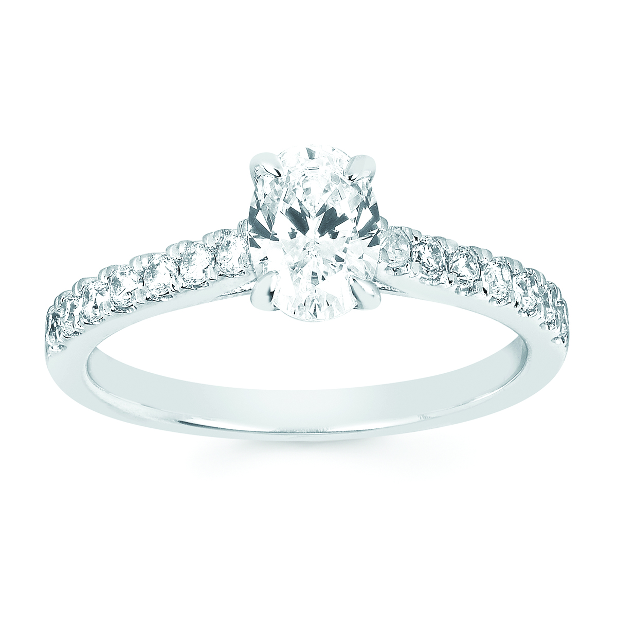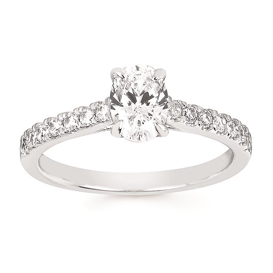 Engagement Ring Classic Bridal: 1/4 Ctw. Diamond Semi Mount shown with 3/4 Ct. Oval Center Diamond in 14K Gold
